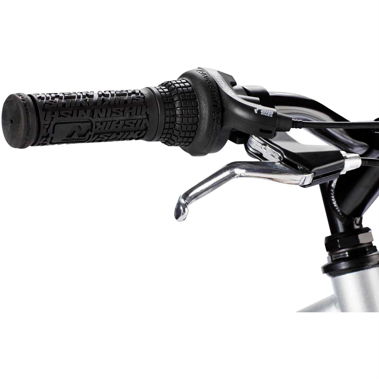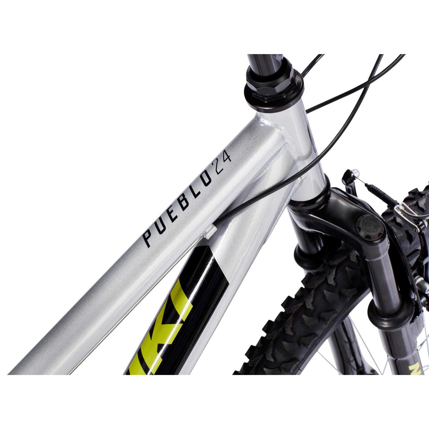 The Nishiki Boys’ Pueblo 24” Mountain Bike will spark his sense of adventure and outdoor fun. It features a strong steel frame with front suspension to absorb bumps from uneven terrain, easy-to-use linear pull brakes for quick and confident stops, and a sport saddle for comfort. The Shimano Revo twist shifter allows him to get in the right gear every time.