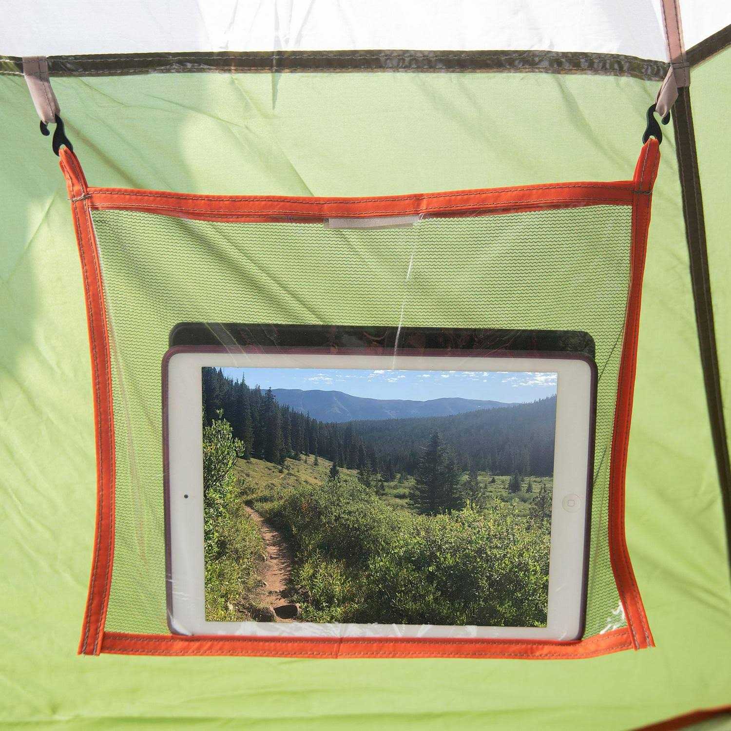 The Ozark Trail 18-Person 3-Room Cabin Tent is a great tent for taking your crew away to reconnect with nature. The tent is 255 square feet of spacious living with an 86 inch center height. Two sewn-in room dividers create 3 rooms each with a door for easy entry or tie the dividers back for one large living area. Three E-ports allow every room to stay plugged in. The Ozark Trail 18-Person 3-Room Cabin Tent comfortably fits 4 queen-size airbeds or sleeps 18 people in sleeping bags. A mesh roof 8 windows and a rain fly that rolls back on each side allows for-gazing or extra ventilation on warm nights. Storage pockets and O-rings keep small items off the floor and a mud mat to keeps the tent clean. Taped seams provide weather protection and reflective guy lines decrease trip hazards. Color-coded poles and sewn-in assembly instructions make set-up a cinch. A wheeled carry duffle makes transporting the Ozark Trail 18-Person 3-Room Cabin Tent easy. Camping has never been so relaxing.