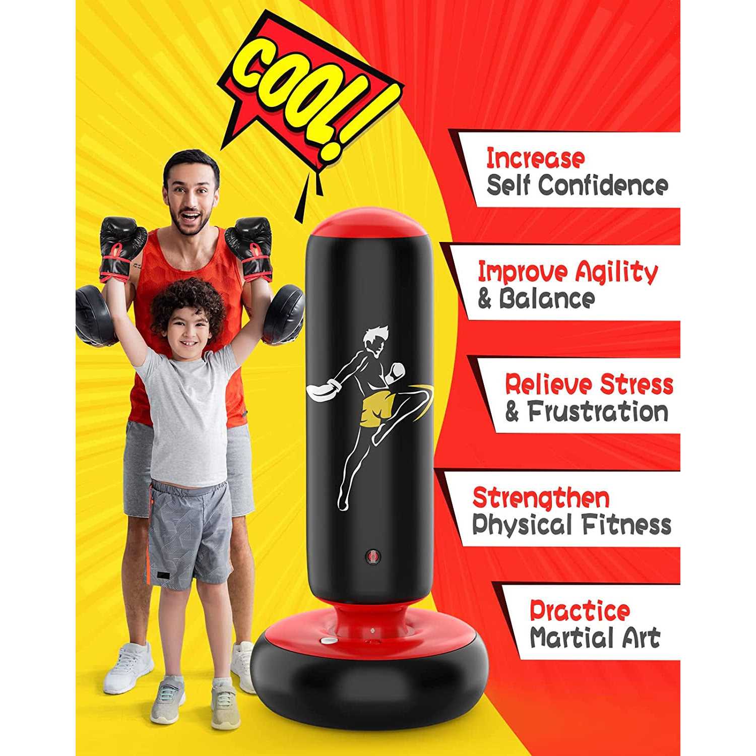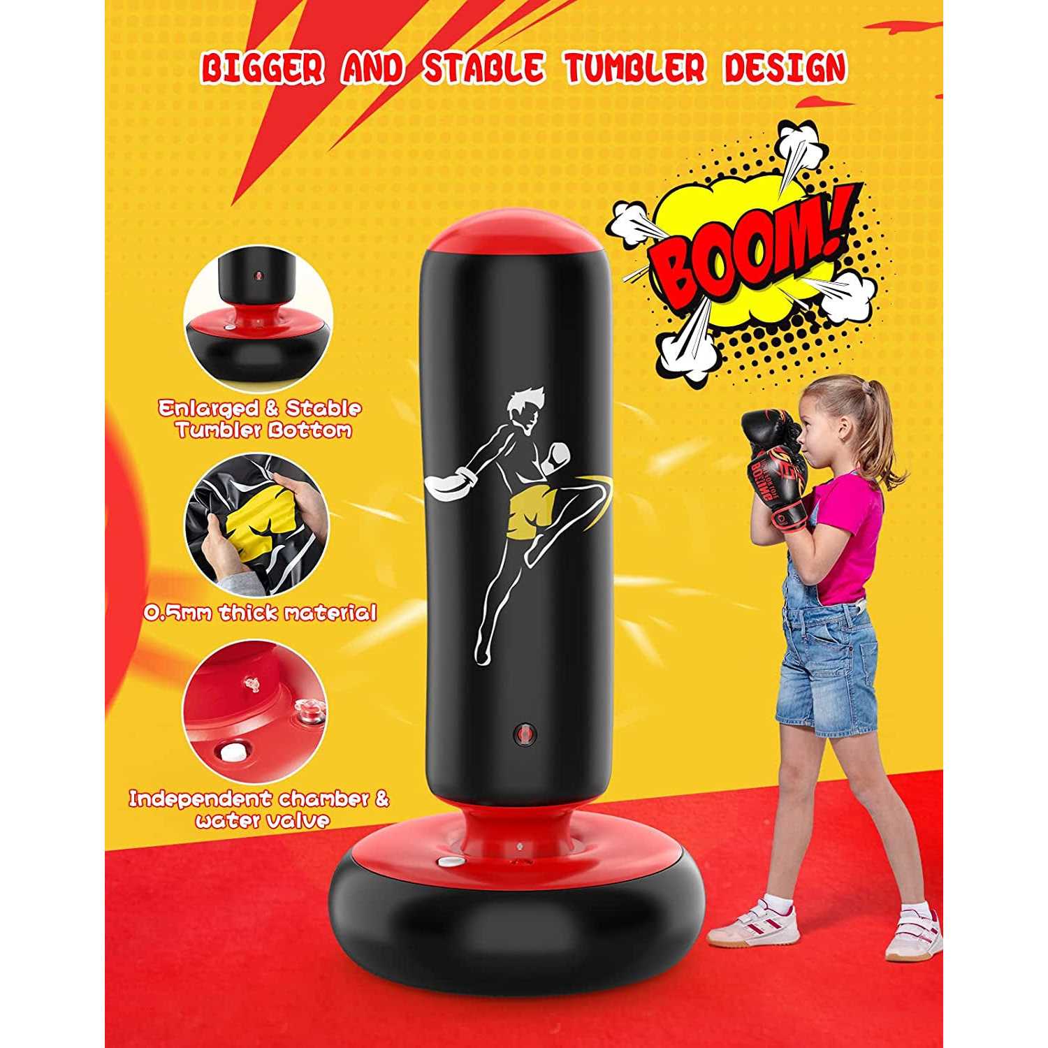QPAU Larger Stable Punching Bag for Kids Tall 66 Inch Inflatable Boxing Bag