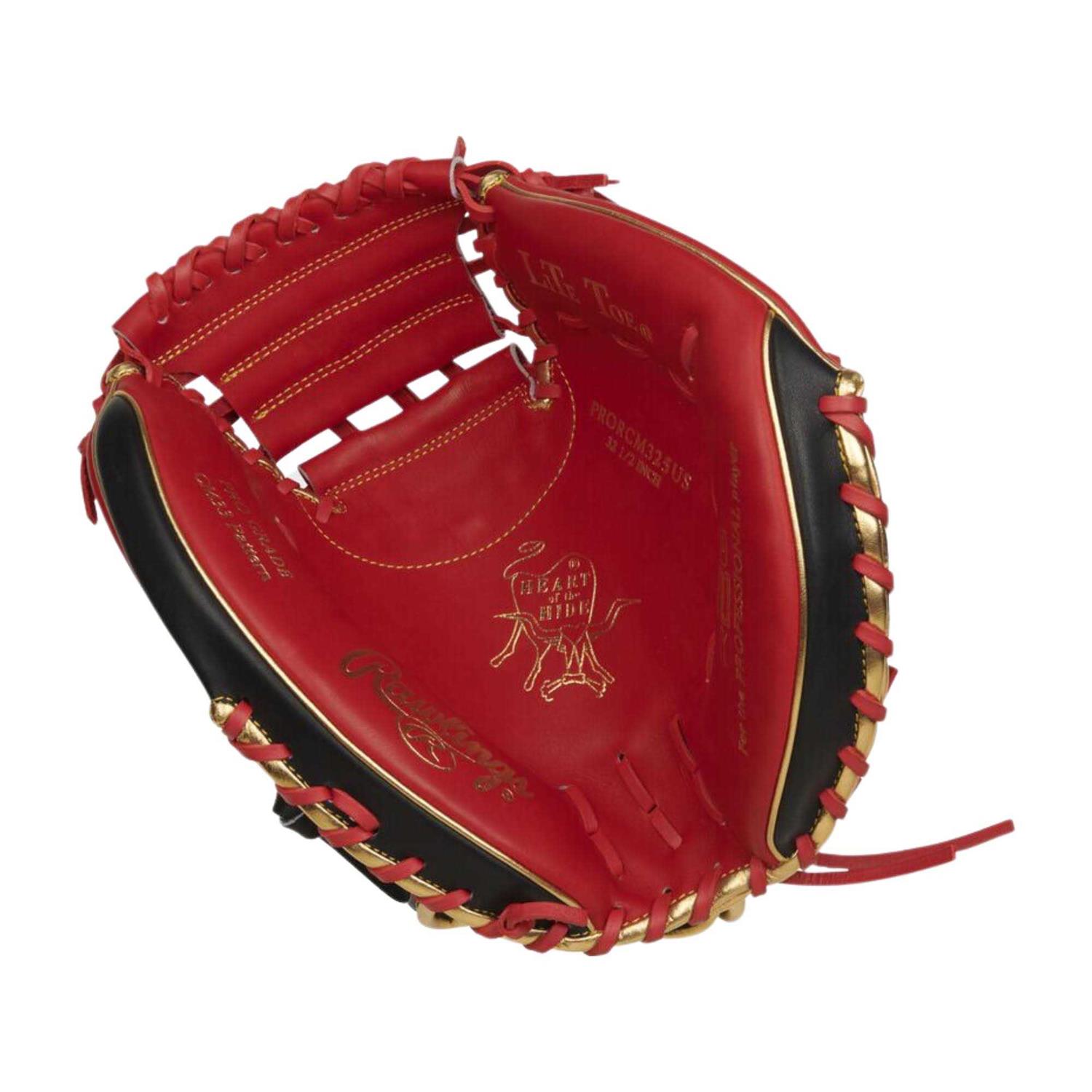 RPRORCM325USGet a secure fit behind the dish with this Rawlings Heart of the Hide R2G ContoUR fit catcher’s mitt! For starters, this mitt was crafted with world-renowned, ultra-premium Heart of the Hide leather, so you know it’s built for comfort, durability, and performance.In addition, it comes with an eye-popping black and red colorway that will be impossible for pitchers to miss when you’re behind the plate. The gold detailing around the binding and Oval-R are the icing on one beautiful cake! Also, this mitt features 25% more factory break-in, so you can use it right away, and our special ContoUR fit. That means that with a smaller wrist opening and lowered finger stalls, even players with thinner hands can command this mitt with ease around the zone.Get your 32.5 inch Rawlings Heart of the Hide R2G catcher’s mitt today!