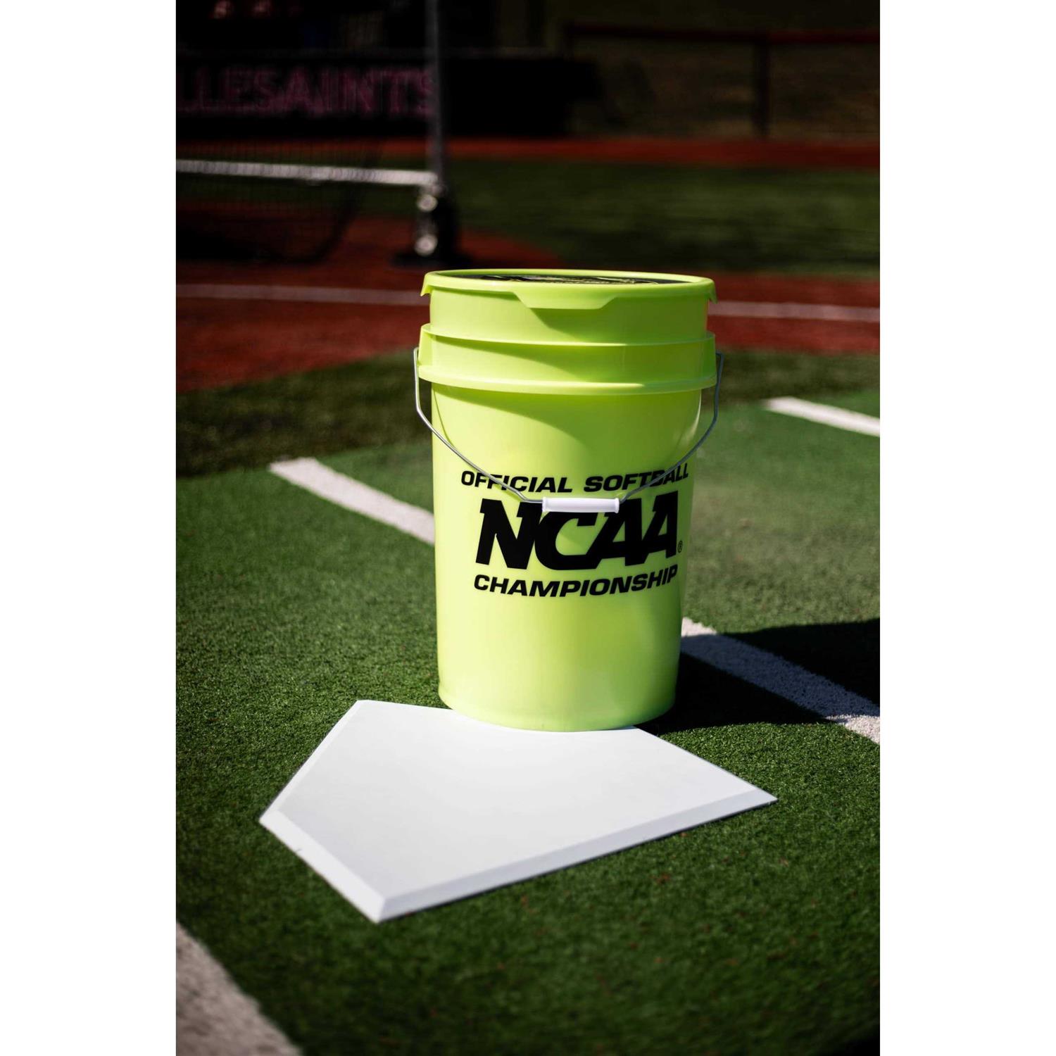 This 6 gallon bucket of 12″ batting practice softballs are the perfect item for any collegiate, high school or travel ball softball team. These 12″ batting practice balls feature a poly-x core and synthetic core to make them super durable and great practice balls. The green 6-gallon bucket is large and comes stocked with 12 balls.