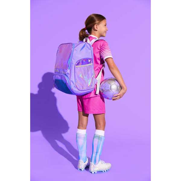 Express yourself with the NEW RIP-IT Girls Training Soccer Ball with fun holographic design certain to make you stand out! Durable construction that plays as hard as you do and a premium bladder that stays inflated longer so you can play all day! Polyurethane laminate so your ball STAYS DRYER. Traditional 32 Panel construction for OPTIMAL FLIGHT and BOUNCE.
