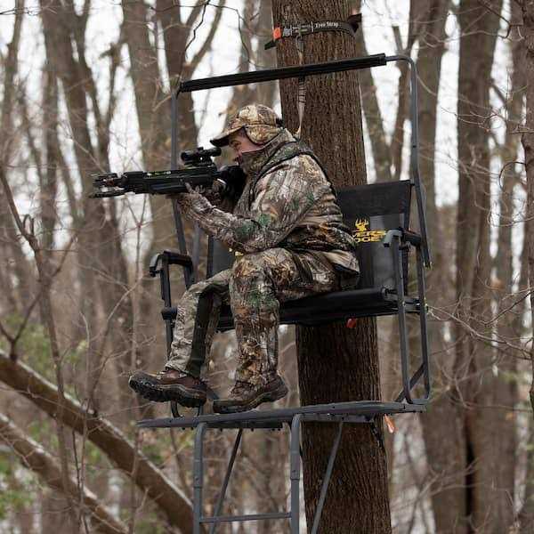 Rivers Edge Twoplex 2-Man Ladder Treestand – The Twoplex ladder stand features a flip-up TearTuff mesh bench seat allowing for 1 or 2 hunters. The 40in wide platform provides plenty of extra room for standing shots. The Twoplex features a 2-way adjustable shooting rail allowing for you to set a height and depth that works for you. Flip-up TearTuff mesh seat for standing shots and all day comfort. Unique no-split TearTuff mesh seat allow you to sit right in the middle. 40in wide platform for extra room. 2-way adjustable shooting rail for height and depth. Dual tree blades improve platform stability. Includes two ratchet strap and criss-cross stability straps. Includes adjustable length stabilizer bar. Included Components: tree stand manual safety harness and bolts. All steel construction.