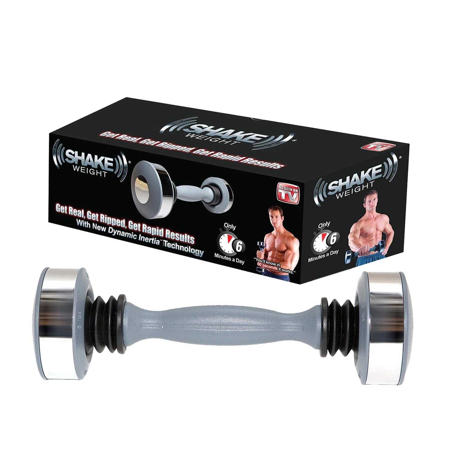 Shake Weight for Men Shaking up the way you work out, the Shake Weight is a revolution in strength training. Boasting a legion of devotees who enthusiastically confirm the Shake Weight’s claim that it shapes and tones the upper body, this product is hard to ignore. The way it works is this a special pulsating dumbbell with the dynamic inertia technology increases upper body muscle activity by 300 percent compared to traditional weights as you shake the 5-lb. weight several different ways. This repetitive shaking stimulates muscle toning and adds shape to your upper arms, chest and shoulders. Get incredible results in just 6 minutes a day Designed specifically for men Weighs 5 lbs.