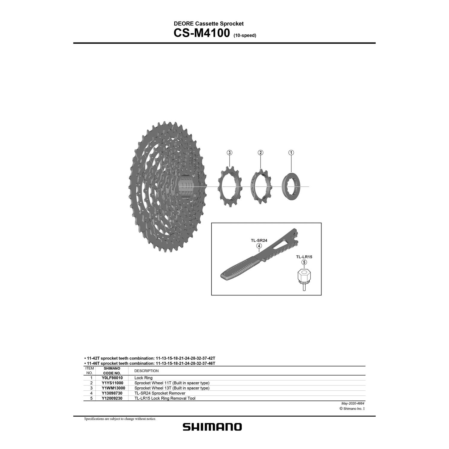 - Deore M4100 10-Speed Dyna-Sys cassette featuring light weight minimal design