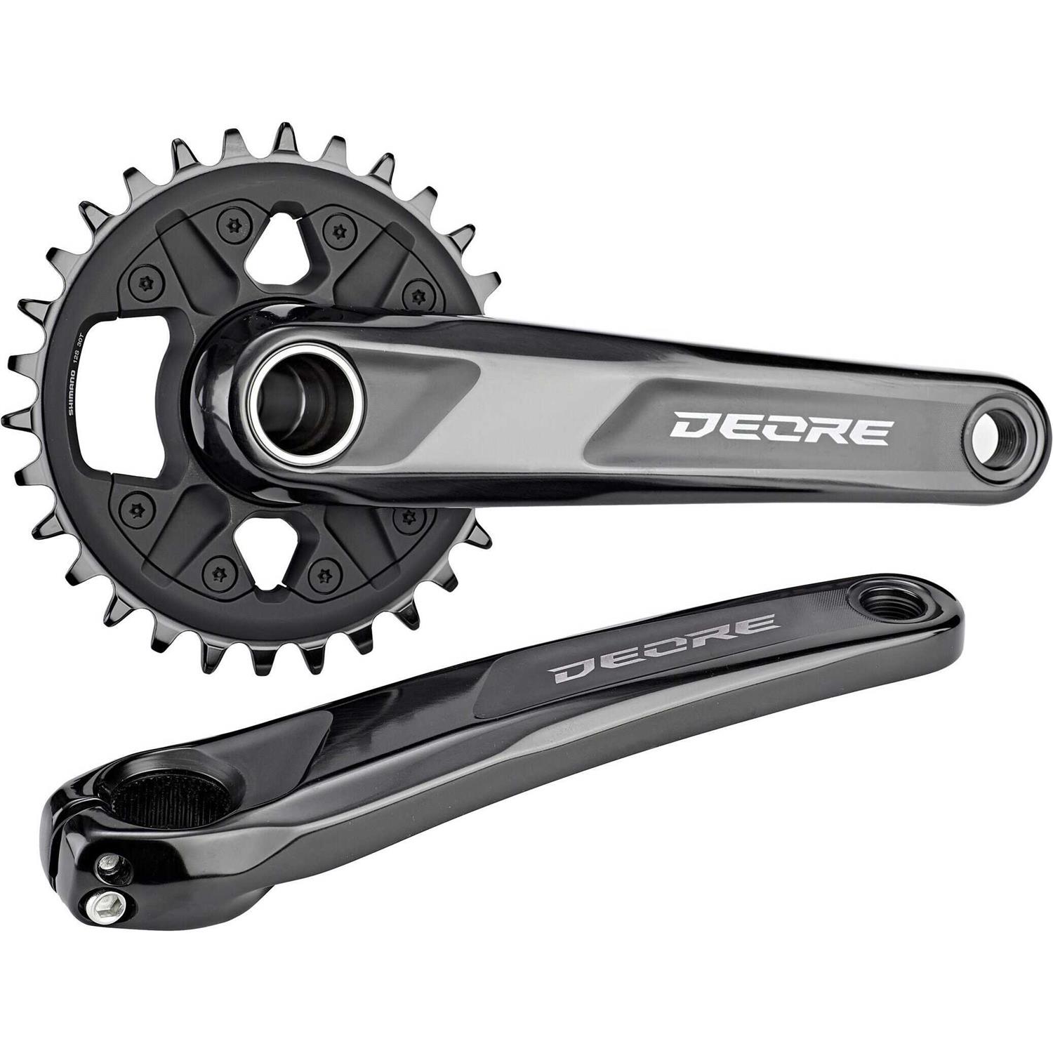 Shimano Deore FC-M6100 12-Speed Chainset Deore has long been known as the workhorse of Shimano’s MTB range, so the FC-M6100 12-Speed Chainset is a fantastic, reliable choice with great performance at a reasonable price. The crank arms are forged for stiffness and efficiency whilst the 1x aluminium chainring offers excellent chain retention. It has a 52mm chain line designed for use with 135 or 142mm frames and works best with a HollowTech II bottom bracket that has wide bearing placement and a large axle diameter for more stiffness, durability and efficiency.