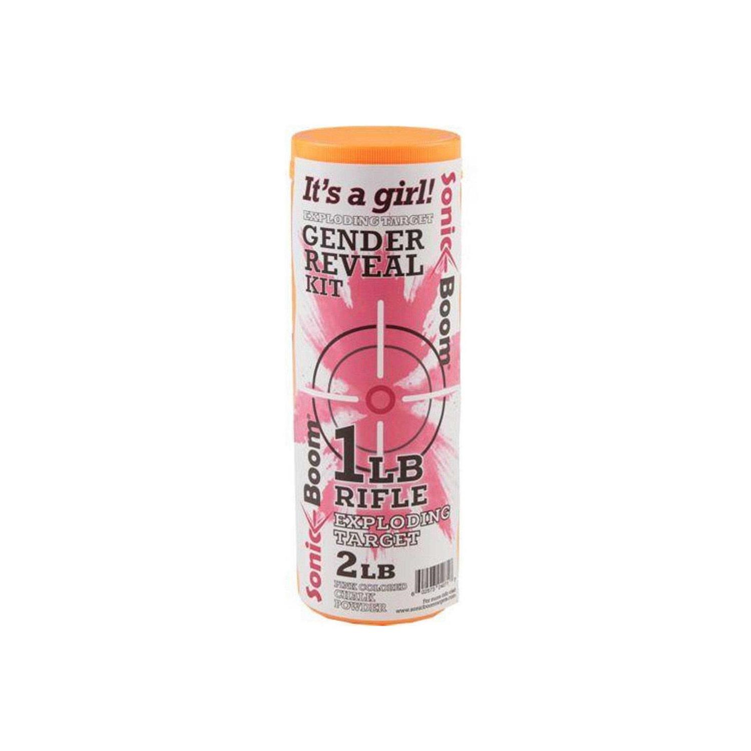 Announce the big new with the Sonic Boom Gender Reveal Kit. Just mix up the target, place the chalk on top and shoot the target with a centerfire rifle from at least 100 years away to trigger a colorful explosion. Kit comprised of 1 pound of Sonic Boom rifle target and colored chalk.