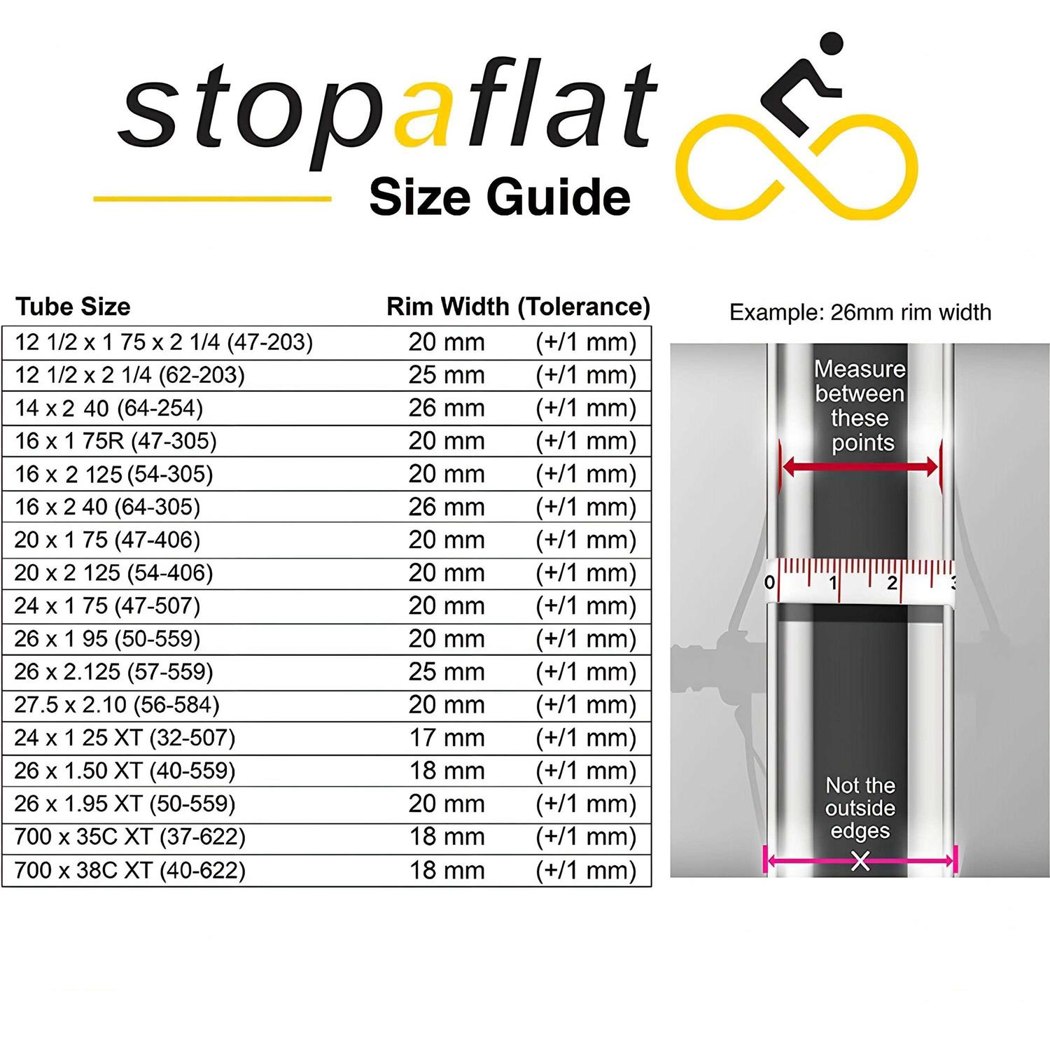 • Stop-a-flat tubes are “Size Specific” to a tire and care should always be taken when matching the tube to the tire.