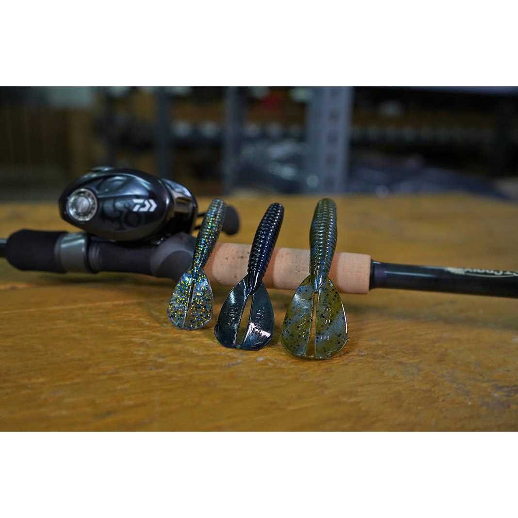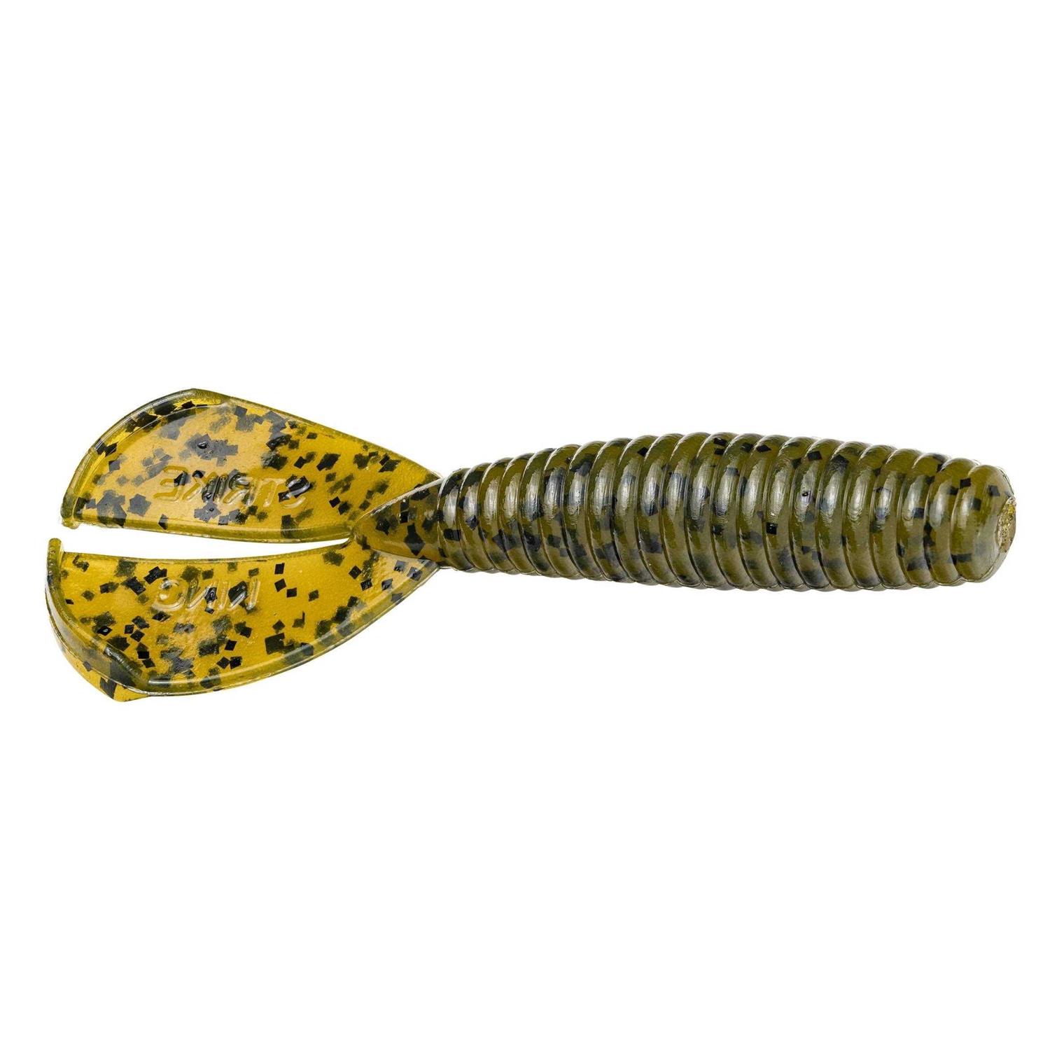 Finally, a twintail grub that has crazy tail action even with slow fall or retrieve speeds! The Rage Twintail Menace Grub combines two uniquely shaped tail appendages with the patented Rage Tail Flange that moves water like no other. Great for Flipping/Pitching or used as a Jig Trailer! The action and profile is RIGHT and the colors are as well, so get ready for some fast and furious BASS Action! Works great on Strike King Tour Grade Jig Head and as a jig trailer!