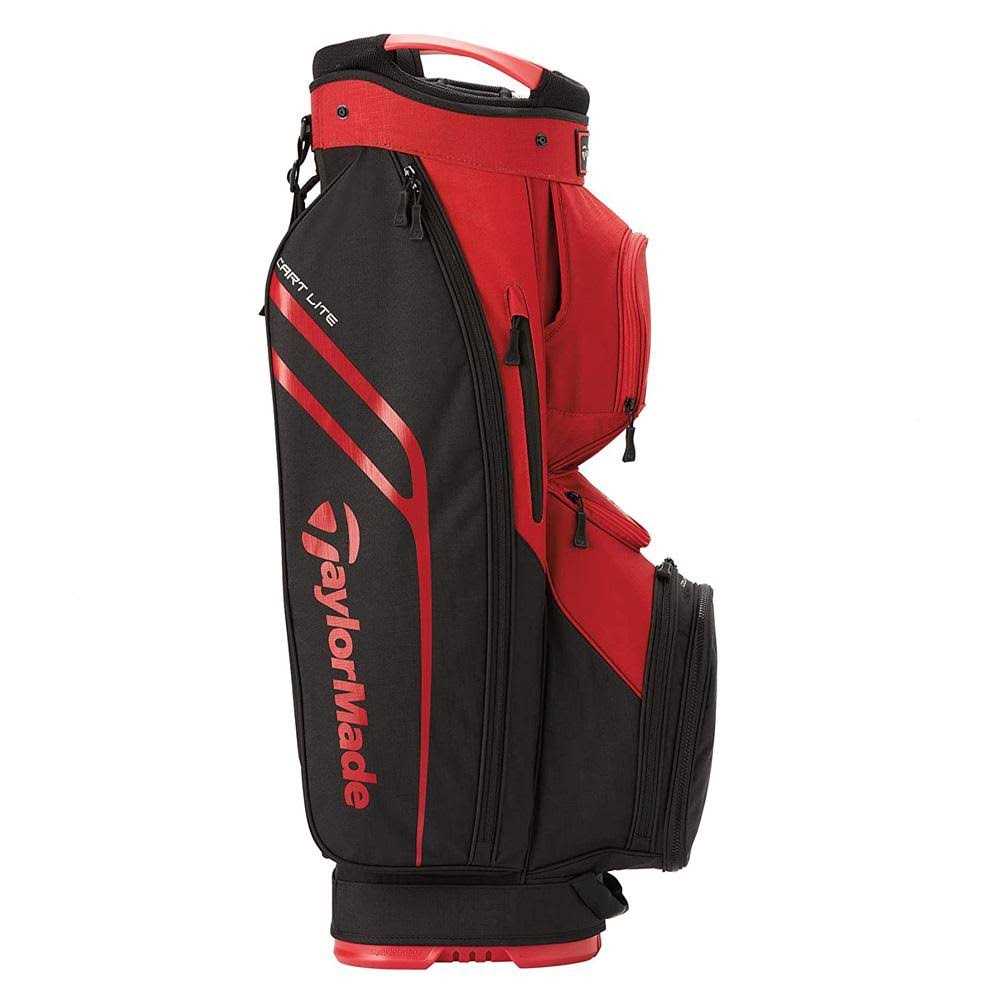Style meets function in the Taylormade Cart Lite 22, a highly organizable and lightweight riding bag. At just 5.0 lbs, the Cart Lite delivers everything you expect from a full-size cart bag in an easy to transport lightweight model. Youll have space to store all your golf course essentials, along with a 14-way top and individual club dividers for easy and secure storage. The cart-optimized top and base are engineered for a better fit, while the cart strap pass through will keep the bag securely in place as you cruise the fairways.