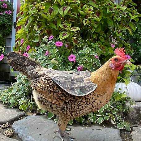 Protect your hen friends during the mating process with The Chicken Chick Hen Mating Saddle. Designed by chicken-keeping author and consultant Kathy Shea Mormino, also known as the Chicken Chick, this mating saddle is thoughtfully made to keep your feathered friends safe and comfortable. The saddle is specially crafted to cover your hen’s vulnerable areas such as the back and wings that can be damaged during breeding. It’s constructed of sturdy, lightweight duck cloth for long-lasting durability. It also features double snaps for safety, extra-wide coverage and reinforced stitching. Plus, the camouflage pattern adds protection from predators.