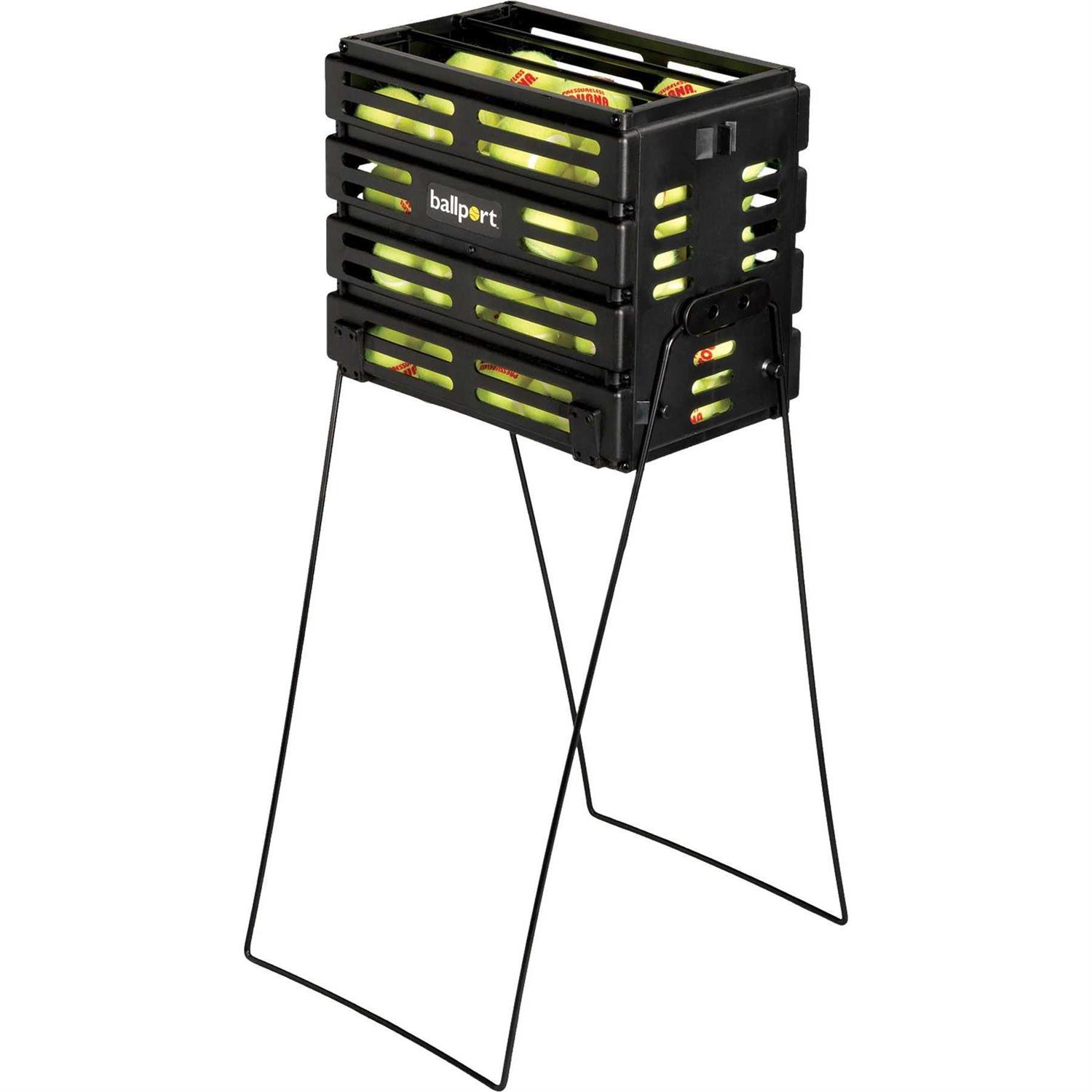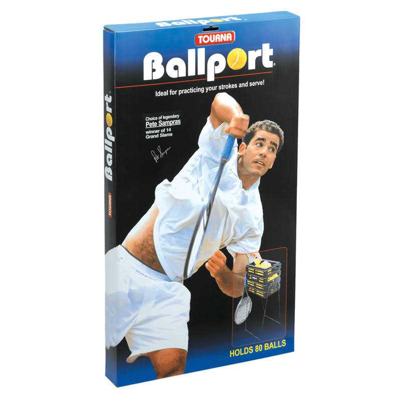 Tourna Sampras Ballport 80-Ball Basket, the choice basket by champion Pete Sampras, is made of tough polypropylene. No wires to rust, welding to break or paint to peel. Handles rotate and lock up or down for easy pickup and dispensing. The Ballport 80-Ball Basket is easy to assembly with panels locking into place and legs easily attached with provided screws. Rolling bars on the bottom help ease balls into the basket and hold them in. Sliding bars on the top slide open to make dispensing easy, and lock closed to hold balls during transport and storage. Handles lock into an upright position for ball collection, and in a downward position for ball dispensing with a patented locking feature.