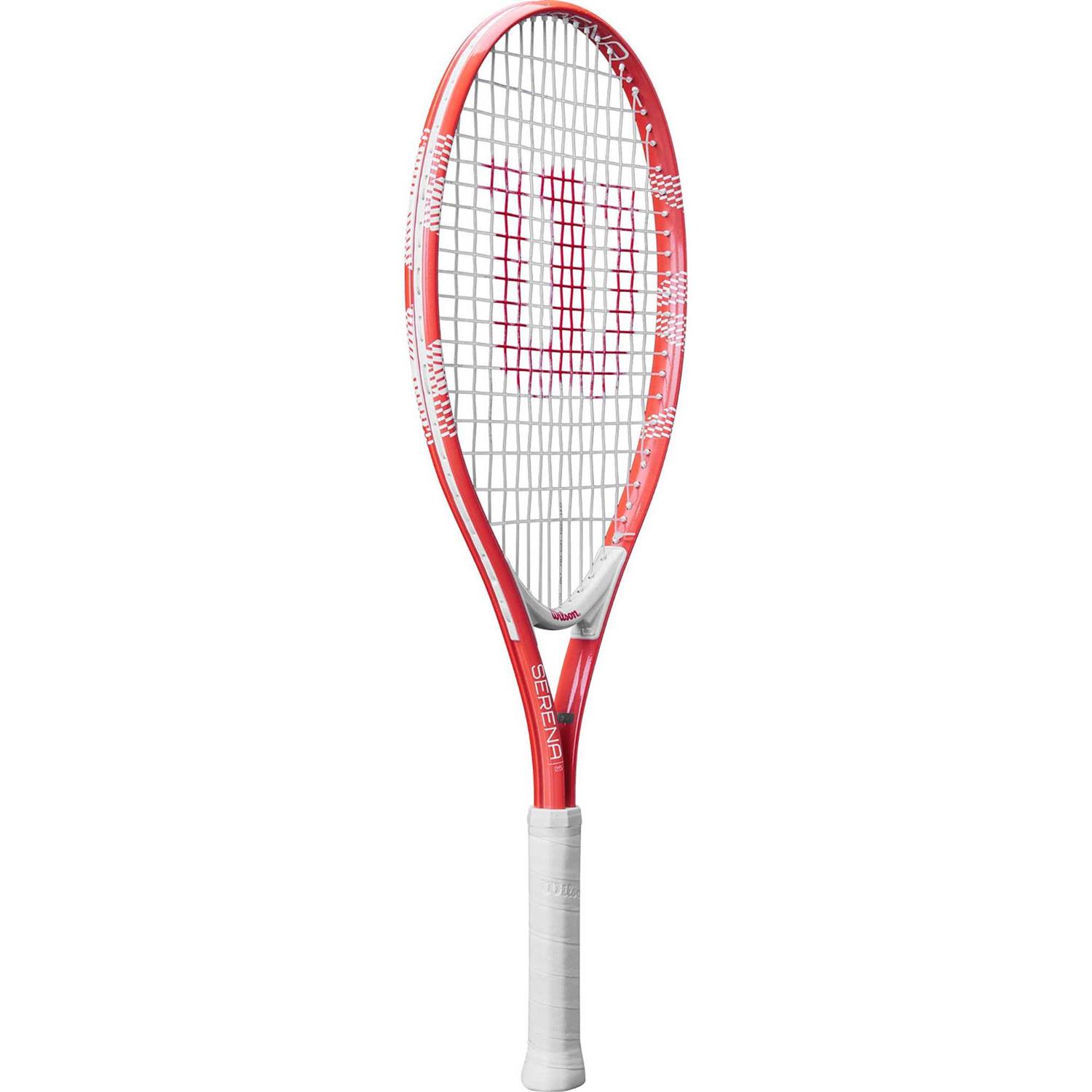 Product Description Learn how to play like a champion with the Serena 25, a junior racket designed for beginning players. Featuring a new attractive design incorporating a fun arrow pattern at 3 & 9 of the frame, this racket provides some pop on comfortable, easy swings. Given the highly playable and appealing nature of this collection, kids will be inspired to play like a legend when they pick one of these up.
